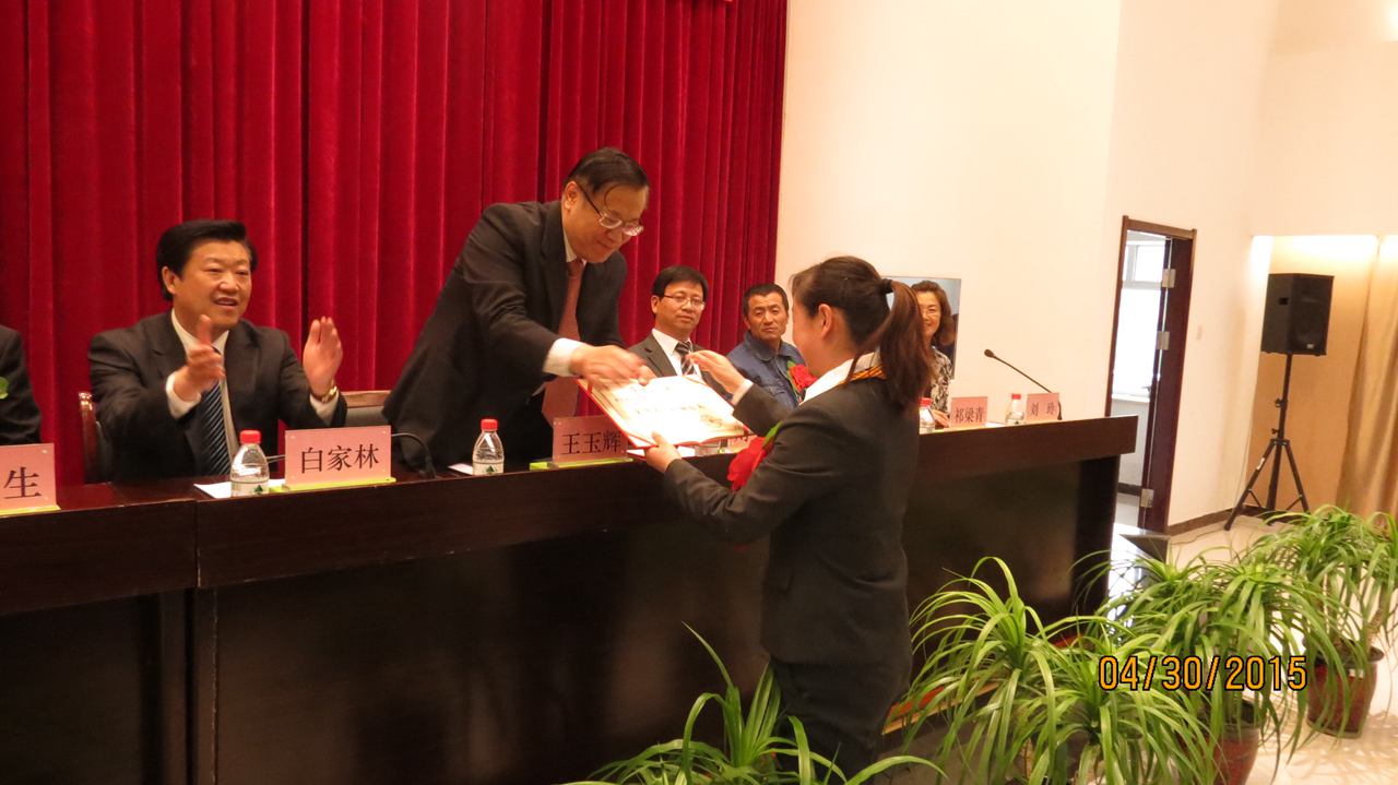 集團(tuán)總經(jīng)理王玉輝首先為榮獲"全國五一巾幗標(biāo)兵"榮譽(yù)稱號(hào)的青海物產(chǎn)汽車貿(mào)易有限公司銷售總監(jiān)劉少俠頒發(fā)了榮譽(yù)證書。