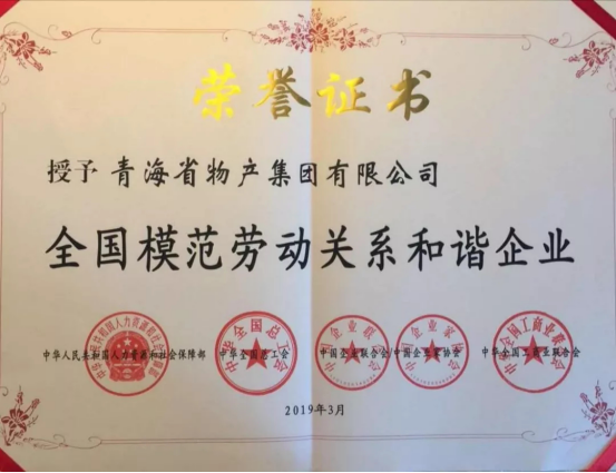 由青海省人力資源和社會(huì)保障廳、青海省總工會(huì)、青海省企業(yè)聯(lián)合會(huì)/企業(yè)家協(xié)會(huì)、青海省工商業(yè)聯(lián)合會(huì)共同推薦申報(bào),青海省物產(chǎn)集團(tuán)有限公司、青海互助青稞酒股份有限公司、正平路橋建設(shè)股份有限公司榮獲全國(guó)模范勞動(dòng)關(guān)系和諧企業(yè)光榮稱號(hào),西寧經(jīng)濟(jì)技術(shù)開(kāi)發(fā)區(qū)東川工業(yè)園區(qū)榮獲全國(guó)模范勞動(dòng)關(guān)系和諧工業(yè)園區(qū)光榮稱號(hào),受到了國(guó)家人力資源和社會(huì)保障部、中華全國(guó)總工會(huì)、中國(guó)企聯(lián)、全國(guó)工商聯(lián)的隆重表彰。