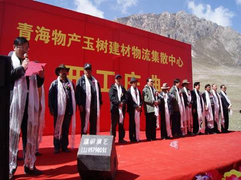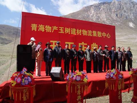 省玉樹地震災(zāi)后重建現(xiàn)場指揮部指揮長、副省長馬順清宣布建材物流集散中心正式開工并講話。省政府副秘書長巨偉、省經(jīng)委、省城鄉(xiāng)住房建設(shè)廳、西寧市政府、玉樹州政府相關(guān)部門、玉樹縣有關(guān)負(fù)責(zé)同志,省物產(chǎn)集團總經(jīng)理王玉輝、黨委書記白家林、副總經(jīng)理物產(chǎn)化工公司董事長耿保平等參加了開工儀式。